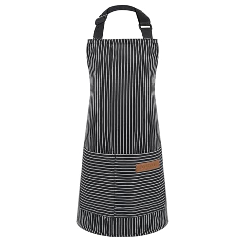 JJUNW 1 st barnförkläde, barnförkläde för matlagning, småbarn förkläde ränder barn med 2 fickor, sött barnförkläde för pojkar flickor, Svart