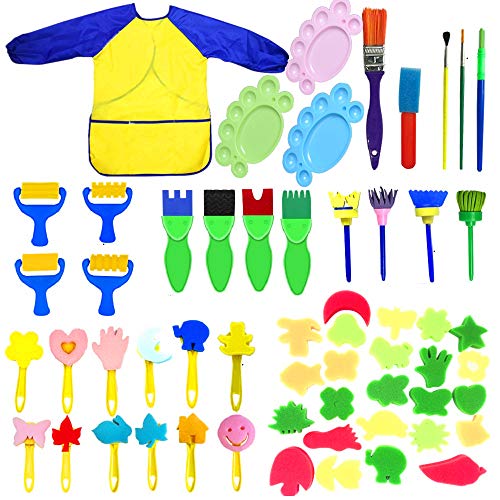Fycooler svampborstset barn, barn målarverktygsset, svamp målning pensel, vattentätt förkläde, målarsvampar för barn, stämpelborste, barn tidig utbildning ritning verktyg – 57 st