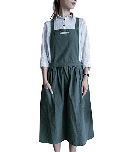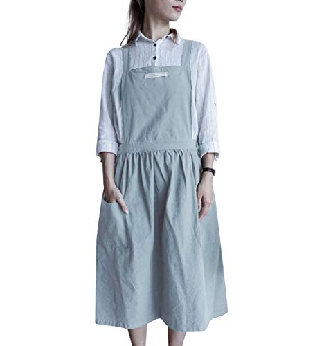 Nanxson Linneförkläde av bomull för kvinnor, förkläde, matlagning, kök förkläde, arbetsförkläde med 2 fickor, CF3094, Mörkgrå, One size