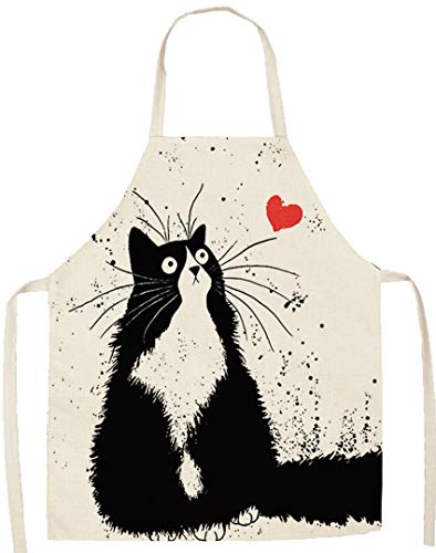 JFAN karikatyr förkläde köksförkläde för kvinnor män kattmotiv fashionabla förkläden roligt förkläde, C-hjärta katt, One size