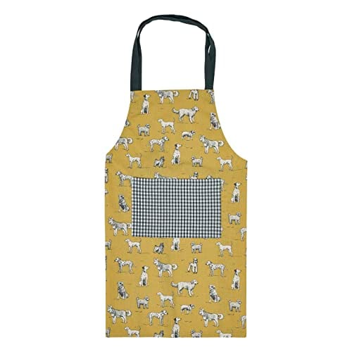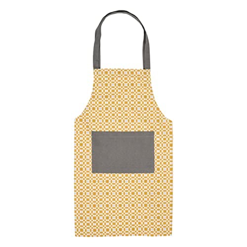 Penguin Home® förkläde | kockkvalitet | Thokka-tryck | vanligt vävd kontrastfärg ficka|återvunnen bomull | miljövänlig och hållbar | justerbar nackrem|, Senap, grå och svart, 70 x 80 cm