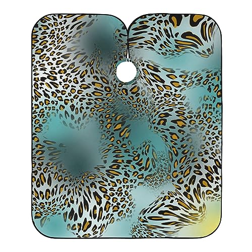 SDMKA Professionell Frisersalong Cape Leopart Turkos Cheetah-tryck Vattentät Frisörsalong Snap Stängning Multifunktionell Barbershop Förkläde för Män Kvinnor