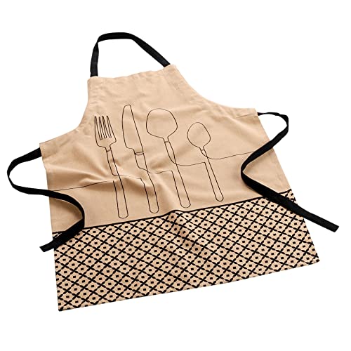 mjukhet av interiör, förkläde 60 x 84 cm beige, återvunnen bomull med tryck, kopparsilin