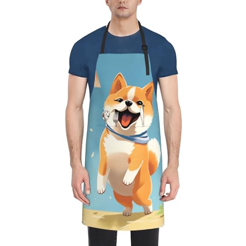 OPSREY Söt Shiba Inu tryck förkläde haklapp med 2 fickor vattentäta förkläden för kök målning trädgårdsskötsel, Svart, one size