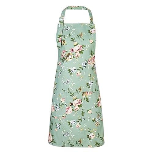 VIDSTW förkläde kvinnor bomull linne, trädgårdsförkläde tryck, köksförkläden justerbar, vattentät och oljebeständig målarförkläde vuxna för kök, matsal, trädgård, kaféer, Grön, 65x44cm