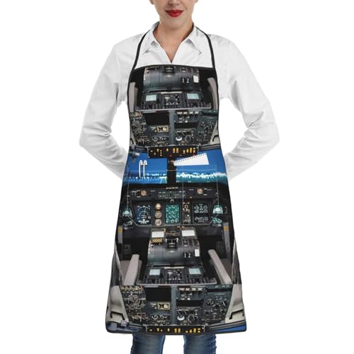 SDFHU Flygplan cockpit tryck unisex förkläde multifunktionella fickor och justerbara remmar, matlagning, bakning, hantverk, vit, en storlek, Vitt, one size