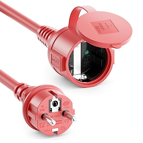 deleyCON 2m Utomhus Förlängningskabel Strömkabel IP44 (H07RN-F 3G1.5mm²) Strömförlängning Väderbeständig Gummikabel för Utomhusbruk - Skyddskontakt Stickpropp till Uttag - Röd