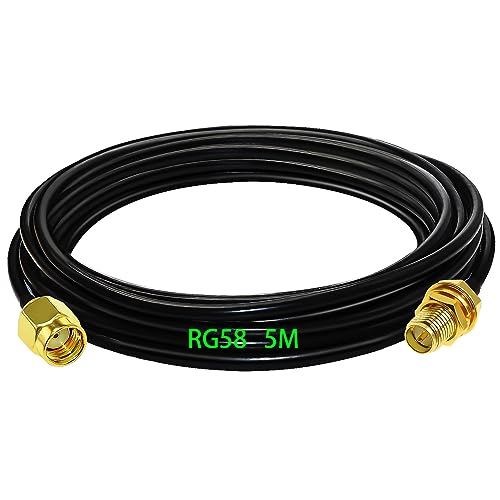 GTIWUNG RP SMA hane till RP SMA hona koaxial förlängningskabel 5 meter koaxial antennförlängningskabel RG58 50 ohm SMA-kabel för HF-radio/WiFi/GPS-antenn låg antennkoaxialkabel