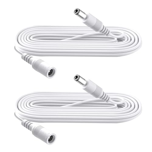 Security-01 2 x 2,1 mm DC-förlängningssladdar för videoövervakningskamera, wifi IP-kamera, DVR, LED-slinga, DC-strömadapter förlängningskabel, vit, 2 m