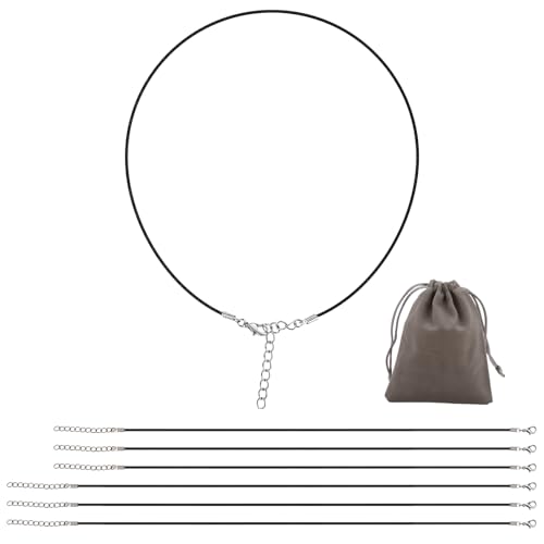 GlasFlength Halsbandssnodd, 6 st, 1,5 mm, vaxad halsbandssnodd med läderrep, 45 cm, med förlängningskedja och 60 cm, för unisex smycken hänge, vaxrep för armband (svart), 45cm, 60cm, Konstläder, Ingen