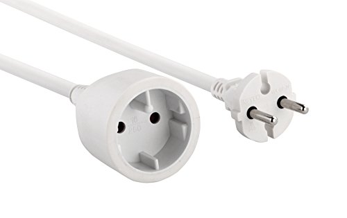 POLY POOL | PP2622X elektrisk förlängningssladd 250 v med elektrisk kabel, vit förlängningsbar 3 meter, med 16 A platsbesparande kontakt och uttag 10 A/16 A 2P + T Pluristandard (italiensk och tysk)