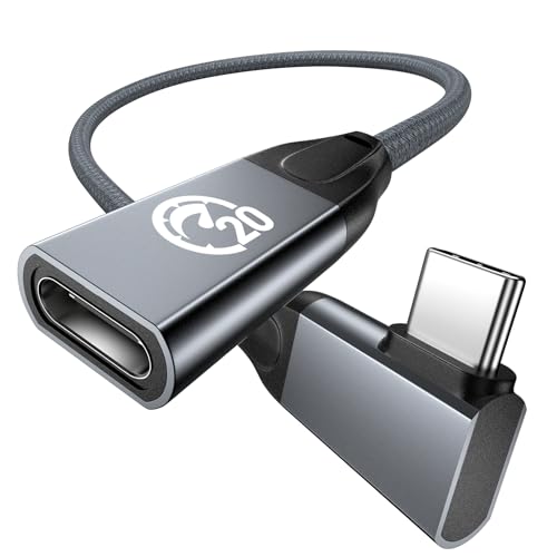Rätvinkel USB C Förlängningskabel 0,2M, UseBean 90 Degree USB C 3.2 Gen 2 20Gbit/s Hane till Hona typ C 4K Video Förlängningssladd, för USBC Dock, MacBook Pro/Air, iPad Pro, Nintendo Switch