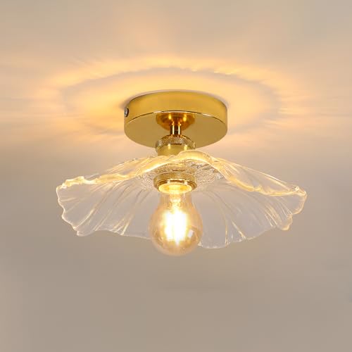 Comely Plafoniera för korridor, E27 Lampa da Soffitto Forma Di Fiore, Smalla Plafoniere da Soffitto i transparent glas, Guldbos, Diameter 28 cm, Lampa inte inkluderad