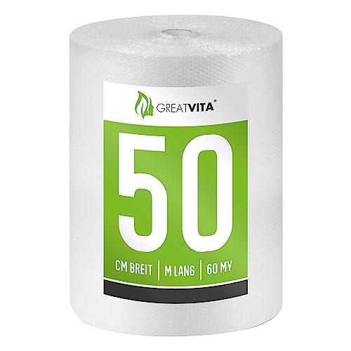 GREAT VITA Bubbelplast 1 rulle - 0,5 x 50 m (60 my premiumkvalitet - perfekt för frakt, förpackning flytt-förpackningsmaterial