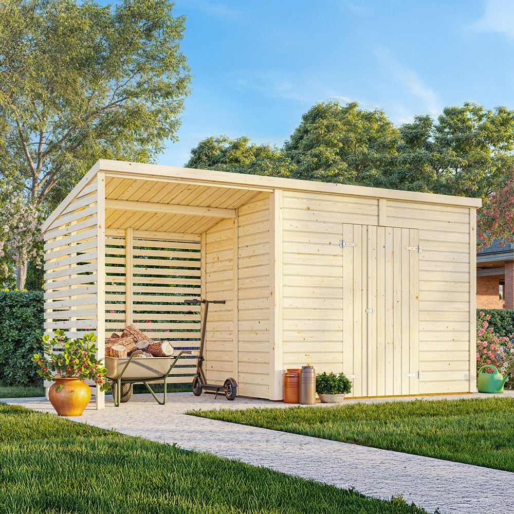 Plus Förråd Nordic Multi 4,7m² 2 moduler öppen inkl. takpapp, aluminiumlister & stolpfötter