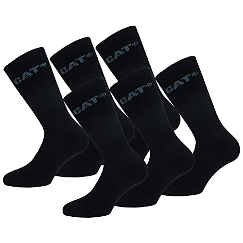 6 par CAT Caterpillar termiska strumpor för män, i mjuk bomull och akryl av utmärkt kvalitet, förstärkt tå och häl (Svart, 41-45)