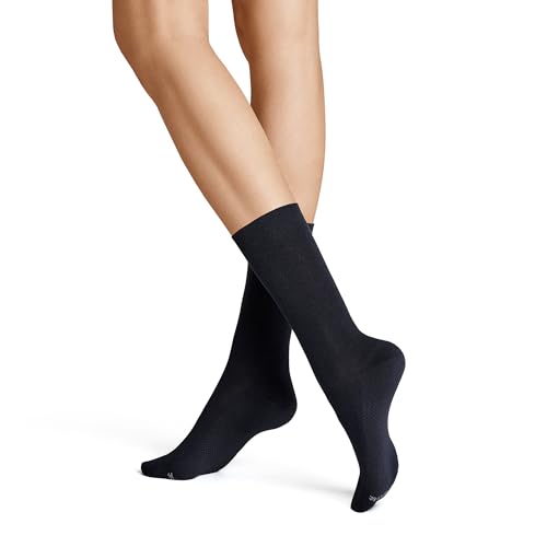HUDSON Damstrumpa 015250 DRY COTTON, stickad, 39/42, marinblå, blå, fuktreglerande, hög bomullshalt, pikékomfortlinning, klimatsula, klimatreglerande, förstärkt spets och häl, marinblå, 39-42 EU