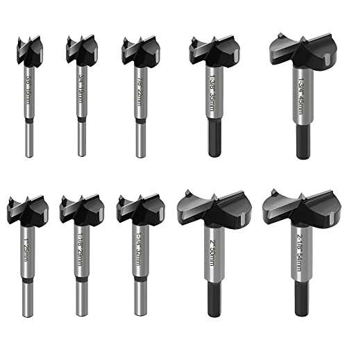 ASNOMY 10 st karbid Forstner borrkronset, 5/8 tums-2-1/8 tum karbidtippad Forstner bit för hårt trä, träborrning, hålsågset, träbearbetning, gångjärn, skärare, verktygssatser för trä, plast, plywood