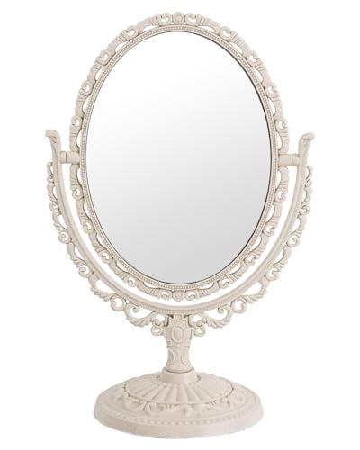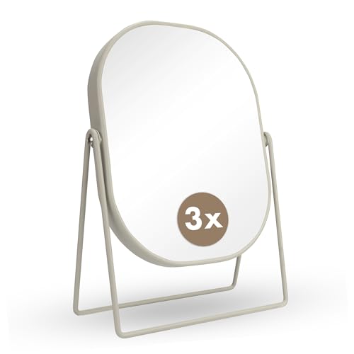 XPXKJ 18 cm bordsskiva sminkspegel med 3 x förstoring vintage spegel skönhetsspegel badrum sovrum toalettspegel (oval, beige)