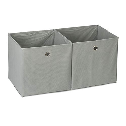 Relaxdays Förvaringsbox tyg set om 2, kvadratisk, förvaring för hylla, tyglåda i kubform 30 x 30 x 30 cm, grå
