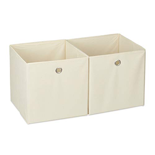 Relaxdays Förvaringsbox tyg set om 2, kvadratisk, förvaring för hylla, tyglåda i kubform 30 x 30 x 30 cm, beige
