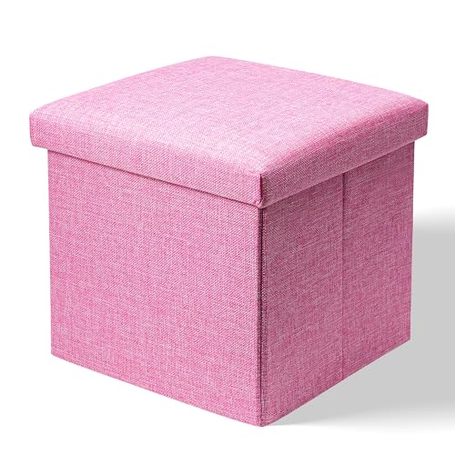 TRIXES Förvaringsottoman, Fotstödslåda med lock, sängpall, platt pack-förvaringskub, leksakslåda, pufffotpall med förvaring, för vardagsrum, sovrum eller lekrum, 30 x 30 x 30 cm - Rosa