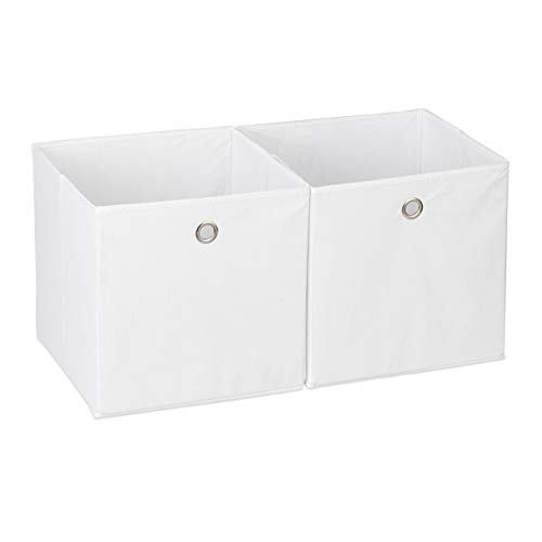 Relaxdays Förvaringsbox tyg set om 2, kvadratisk, förvaring för hylla, tyglåda i kubform 30 x 30 x 30 cm, vit
