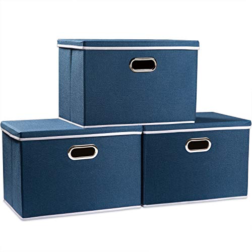 Prandom Stora hopfällbara förvaringsfack med lock [3-pack] tygvikbara förvaringslådor organiseringsbehållare korgar kub med skydd för hem sovrum garderob kontor kungsblå (45 x 30 x 30 x 30 cm) cm