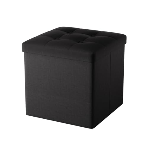 Vikbar ottoman förvaringssäte, vikbar fotpall med förvaring, skobytepall, fotstöd förvaringslådor med lock, för sovrum vardagsrum, svart 30 x 30 x 30 x 30 cm
