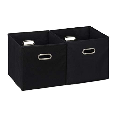 Relaxdays förvaringsbox set med 2, inga lock, med handtag, vikbar, fyrkantiga hyllfack, 30 x 30 x 30 cm, svart, polyester