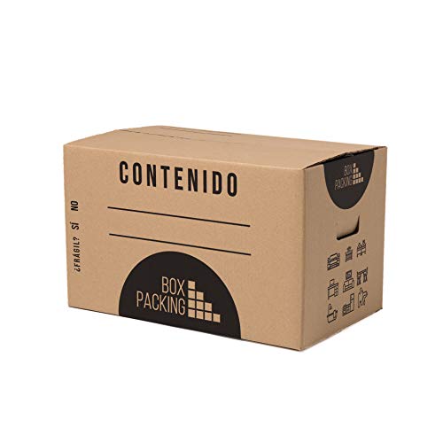 OFITURIA Pack 10 Kartonglådor för förflyttning - Kartonglådor Stor förvaring Dubbel Tålig Kanal med Sidhandtag Mätningar 50x30x30 cm