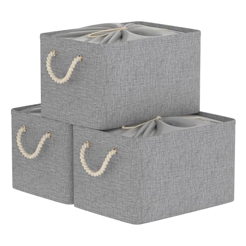 Yawinhe Set med 3 vikbara förvaringslådor, 33 x 23 x 20 cm, korg, bagageutrymme, tygkuber, klädorganisatör, med dragsko och 2 handtag, grå, SNK003GS