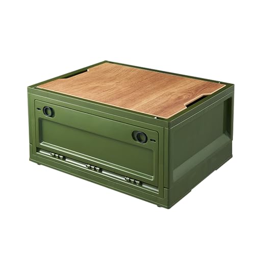 RMAN 38 l förvaringslåda med lock, förvaring i skåpbil, vikbar och stapelbar i plast, stor förvaringsbox med hjul för camping, bagageutrymme, hem - grön