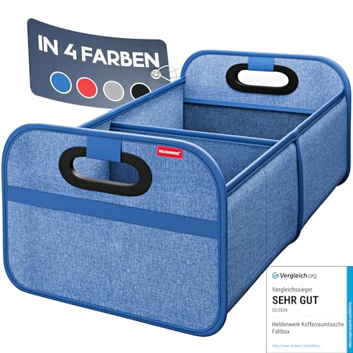 HELDENWERK Vikbar bilbagageväska, förstärkt och stabil, bagageutrymme, organisatör, shoppingväska med organisatör för praktisk förvaring, halkfri behållare (blå)