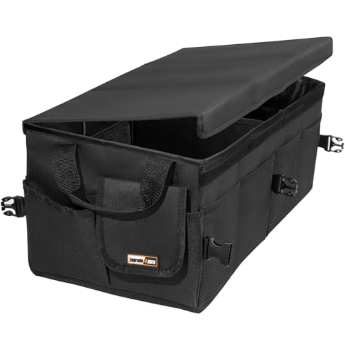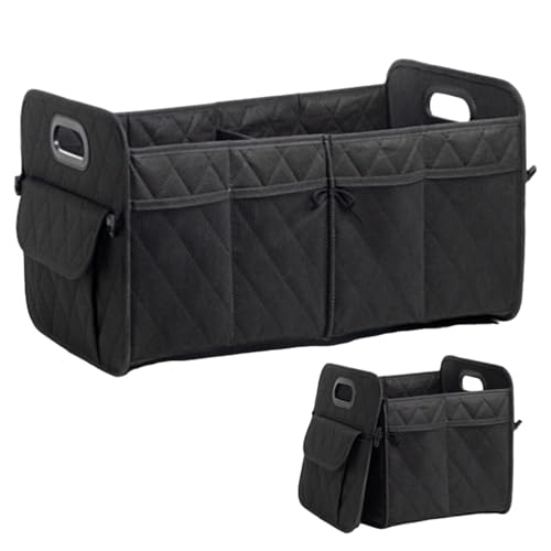 Ergocar Bil bagageutrymme organiserare, bagageförvaring, flera fickor, prydlig förvaring, 3 gånger storlek vikt, bärbar, vattentät 1680D Oxford för bil/SUV/lastbil (Svart, 70 L, med sidofickor)