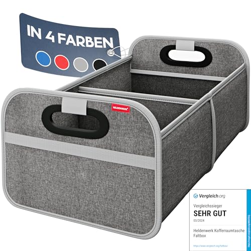 HELDENWERK Vikbar bilbagageväska, förstärkt och stabil, shoppingväska med organisatör för praktisk förvaring, halkfri hopfällbar behållare, bagageutrymme (grå)