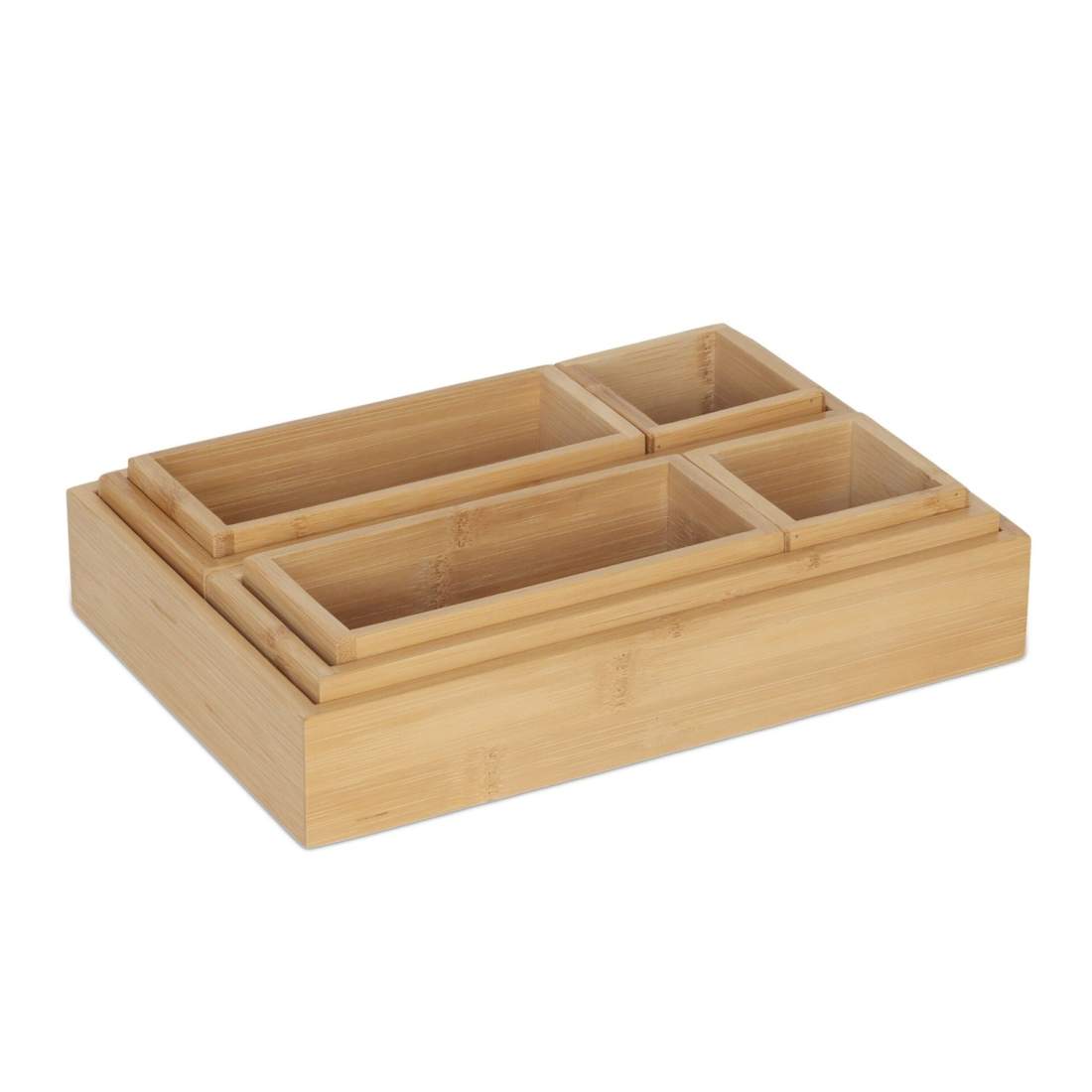 Lådorganiseringsset i bambu – 5 delar, mångsidig förvaring
