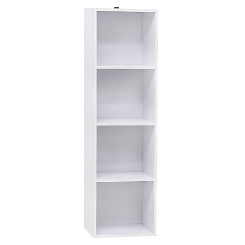 Shelfmade Steghylla vit - smal hylla med 4 nivåer - bokhylla, växthylla - stående kökshylla, badrumshylla - trähylla, stående hylla, förvaring badrum