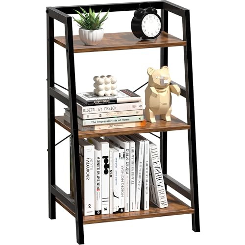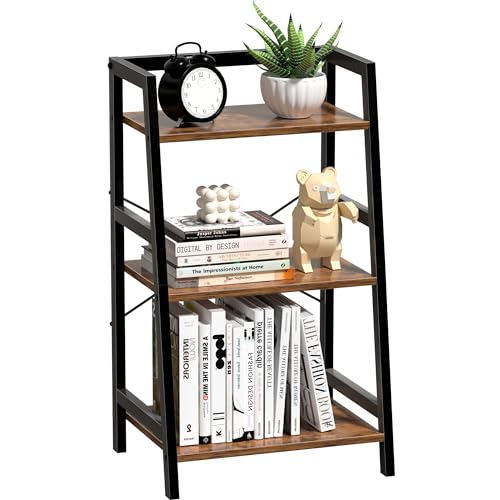 Bokhylla, bokhylla för små utrymmen, 3-nivås hylla bokhylla, förvaring med kort hylla för vardagsrum, sovrum, hemmakontor, kök, 30 cm D x 42 cm B x 80 cm H, rustik brun