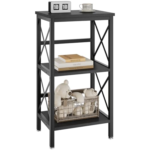 YMYNY Bokhylla, 3 nivåers förvaringsställ, växtställ, förvaring mikrovågsugnshylla med stålram, för vardagsrum, kök, kontor, studiehall, industriell stil, 40 × 29 × 75 cm svart HST008B