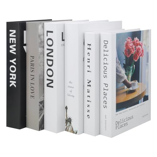 6 Stycken Dekorativa Böcker för Heminredning - Mode Kreativ Engelskt Brev Tryck Falsk Bok Simulering Förvaring för Bokhylla Soffbord Display Hyllor (A)