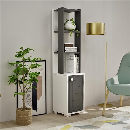 Snygg bokhylla, vit & antracit, 29,6 x 134,6 x 21,6 cm | 100% melaminbelagd partikelbräda, 18 mm tjock | Perfekt för modern heminredning och förvaring