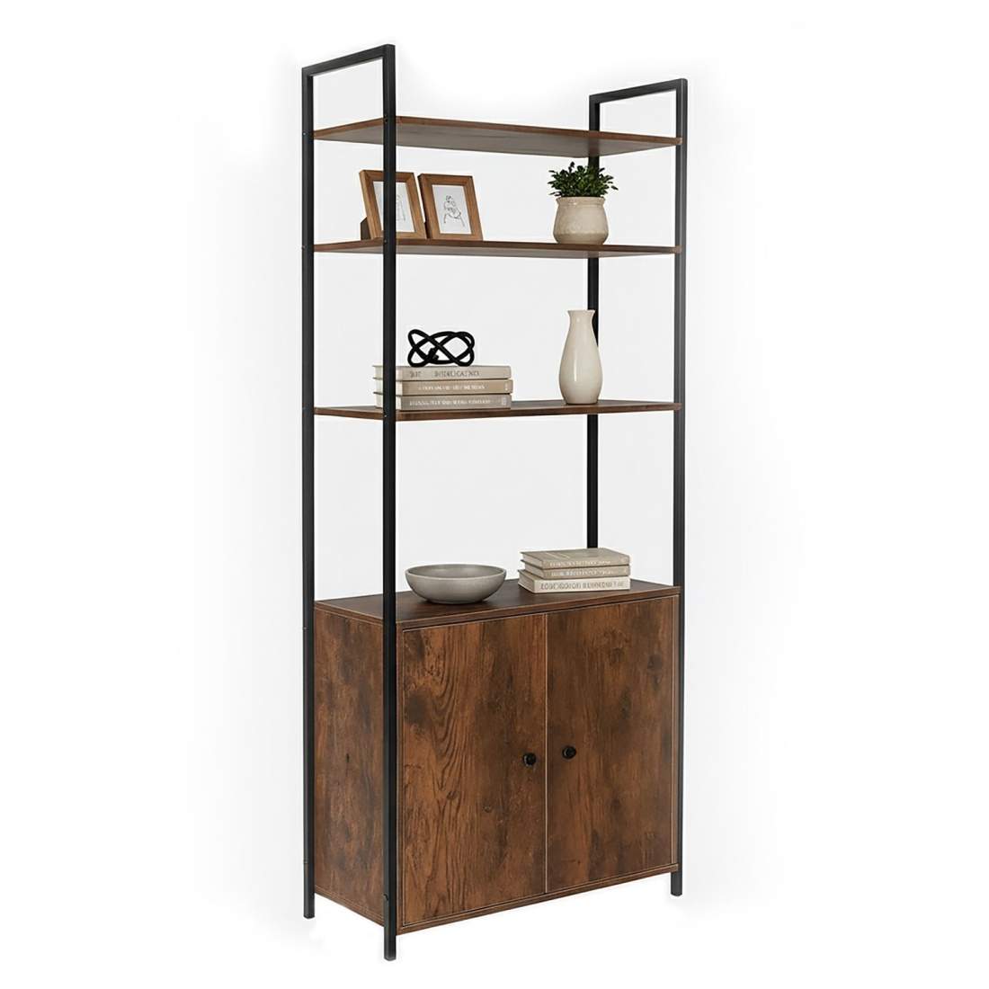 Furinno Gruen 2-nivås öppen hylla bokhylla med 2 dörrars förvaring, metropolitan tall