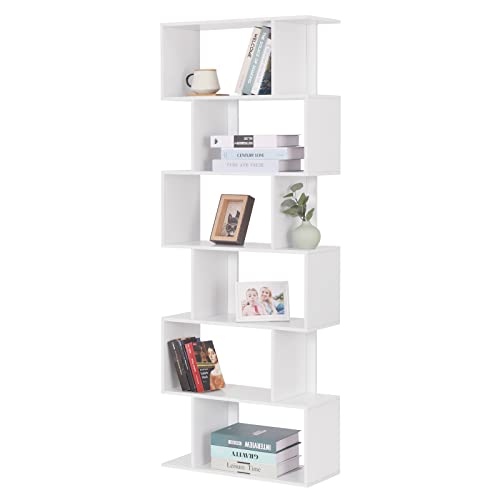 WOLTU bokhylla stående hylla förvaring hylla rumsavdelare kontorshylla arkivskåp, konstruerat trä, 6 fack, vit, 60x23,5x160cm, SK012ws