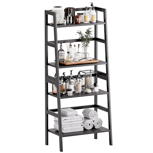 HITNET stege bokhylla, 4 nivåer bambu lutande bokhylla badrum förvaring arrangör enhet, blomma växt display stativ rack för litet utrymme, Svart