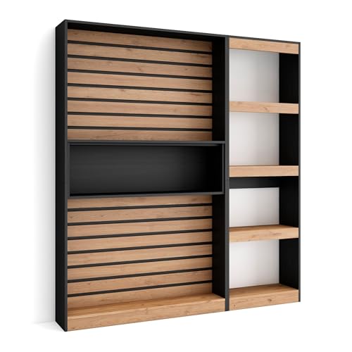 Skraut Home | Bokhylla bokhylla | Hylla Väggböcker | 170x186x25cm | Vardagsrum - Matsal - Kontor | med förvaring | Modern stil | Ek och svart