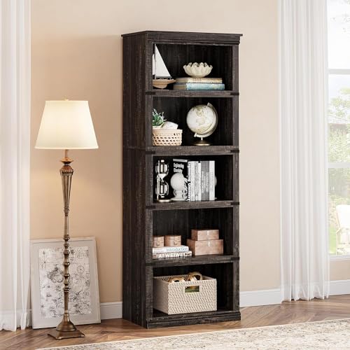 LUNSY 5 våningar bokhylla – 172 cm bokhyllor med förvaring, hög bokhylla trä öppen display bokhylla smal, bokhylla för sovrum, vardagsrum, kontor