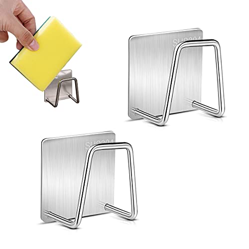 Esteopt Självhäftande svamphållare, 2 stycken rostfritt stål, kök utan borrning, diskbänksorganisatör, förvaring för diskbänk (silver)
