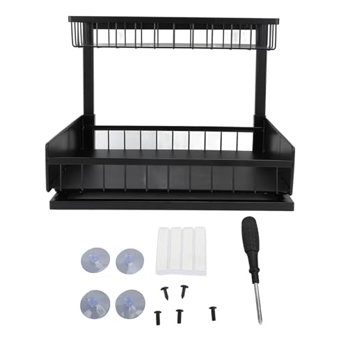 Todeco Förvaringshylla under diskbänk, köksförvaring, 2 nivåer förvaring under diskbänk, glidande organisatör för kök skåp badrum, kolstål (svart)