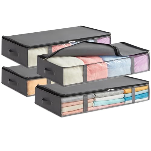 Lifewit 40L förvaring under sängen, 4-pack, vikbara förvaringspåsar för kläder med genomskinligt fönster på framsidan, garderobsorganisering och förvaring för handdukar, kläder, täcken, Grå